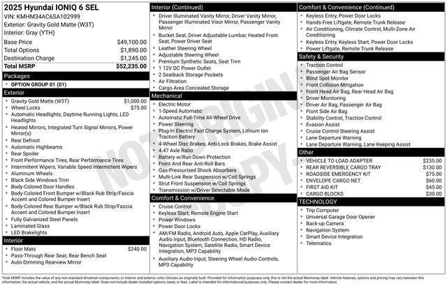 2025 Hyundai IONIQ 6 SEL 111/94 City/Highway MPG