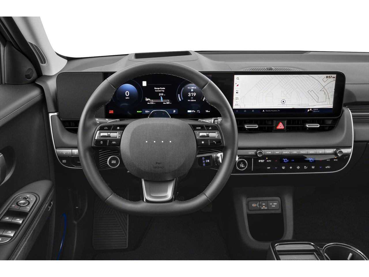- Radio: AM/FM/SiriusXM/HD Audio System -inc: 12.3" digital instrument cluster w/EV technology display, navigation infotainment system, 6 speakers, wireless Android Auto and Apple CarPlay integration, Blue Link+ connected car system, vehicle Wi-Fi hotspot, Bluetooth® w/phonebook transfer; Hyundai Pay, dynamic voice recognition, USB input, Over-the-Air (OTA) Controller ECU and map/multimedia software update capability