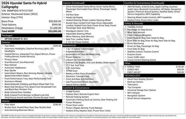 2026 Hyundai Santa Fe Hybrid Calligraphy 35/34 City/Highway MPG